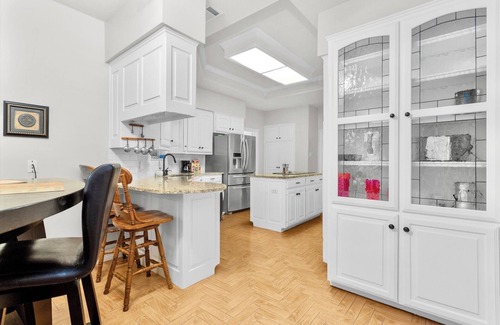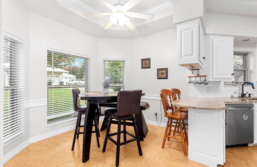 Recently upgraded and beautifully furnished throughout, this spacious and private three-bedroom home features an open floor plan with a full kitchen, counter-height seating, dining area, and a living room with 75” Smart TV.