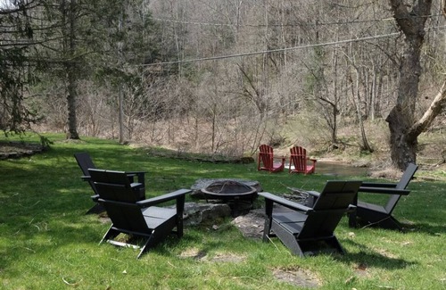 Welcome to The Catskills Retreat! This barn was built in 1900. With its own private creek and expansive backyard that overlooks 8 acres, it truly feels like your own private oasis. As you enter the house, you immediately feel at home. The historic barn has been thoughtfully transformed into an inviting space with exposed wooden beams, original wide plank floors, and a cathedral ceiling.