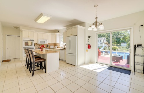 Searching for a well-appointed home base for your next group getaway? Look no further than this vacation rental in Frenchtown, NJ! Boasting an outdoor oasis where you can swim, watch TV, dine al fresco, or play with your pets, this 6-bedroom, 3-bath home is ideal for enjoying fun-filled days together. When you're ready to venture out, explore downtown or visit nearby New Hope. A memorable stay awaits!