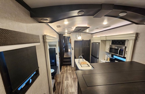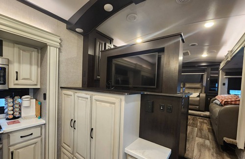 This 44-foot RV is currently located in Okeechobee. We ask for renters to reserve a lot or park they would want the RV to be parked at during their stay (we dont provide the property), and it can be picked up or we can deliver for a fee. RV offers a cozy retreat with a comfortable king bed in the bedroom and full size bath with duel vanities. With three ACs, electric or gas heater, full range kitchen and a washing/dryer machine, guests can relax and unwind in this phenomenal space. The living room features two sofa beds for additional sleeping arrangements, with two additional recliners. RV includes four TVs, a tailgate space, outdoor kitchen with mini fridge, sink and flattop cast grill, with two front sun awnings. Okeechobee offers world class destination fishing and hunting.