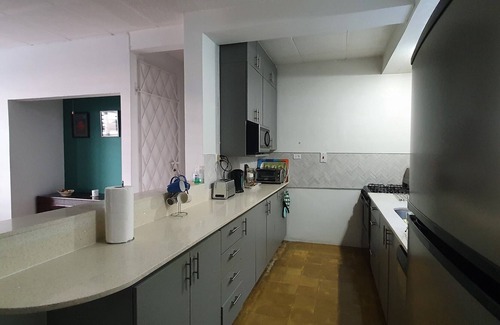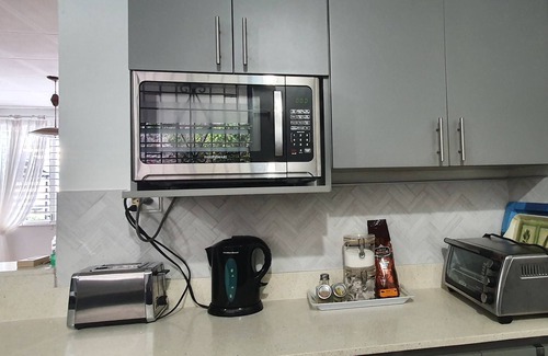A large living area & balcony contribute to an airy feel. A cool Red Stripe with a view towards the harbour and Caribbean Sea is a great way to end the day. Guests also enjoy the balcony for yoga in the morning! The location means shopping, entertainment and of New Kingston and Liguanea are very nearby, while offering an elevated, tree-filled escape with the convenience of WiFi, air con, a water tank, solar water heater & parking for 2-3 vehicles. Hillside is your Kingston home, on a hill, with a view. Fully alarmed with King Alarm response team on hand to attend if needed.