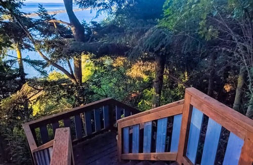 Perched on a high bank overlooking the picturesque Dungeness Harbor in Sequim, WA, this rustic shorefront cabin offers a serene retreat for guests. The property boasts a private trail leading down to its own tidelands, ensuring a secluded and peaceful stay surrounded by nature. Floor-to-ceiling windows in the living room provide breathtaking views of passing ships, the San Juan Islands, Mount Baker, and the twinkling lights of Victoria BC, Canada, creating a truly magical setting.