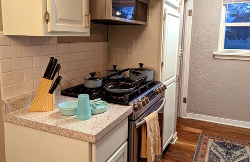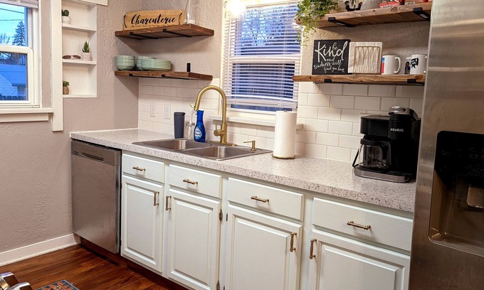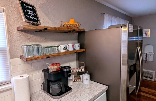 Welcome to The Charming City Cottage! Our stone-accented entry and wooden door will welcome you to a warm and inviting home-away-from-home. Located just blocks away from the bustling downtown area of Sioux Falls, with its exciting entertainment, shopping, and dining options, you'll have everything you need for a memorable vacation.