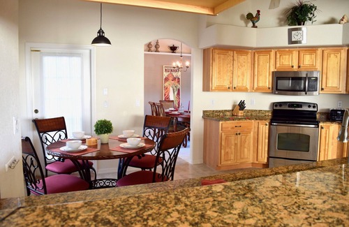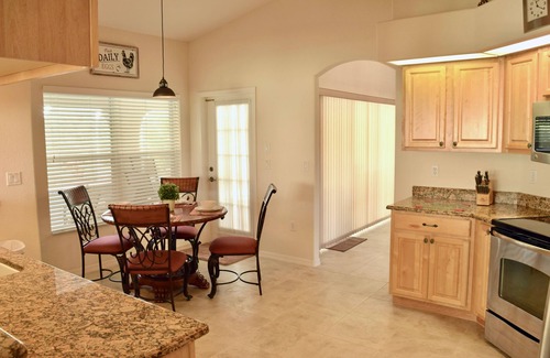 Our home has beautiful, spacious rooms designed to create a relaxing home from home. There is a large great room with sofas and formal dining, a separate family TV room and an eat-in kitchen. The split plan layout provides a large en-suite master with luxury bathroom and his and her closets, while on the other side of the house is an en-suite guest master with its own bathroom and 2 twin bedrooms that share the family bathroom. The house sleeps up to 8 people in comfort.