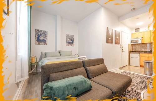 Stay in our beautifully updated and thoughtfully decorated studio. This cozy space comes equipped with WiFi, TV, and AC. Centrally located near top attractions and public transit, you're just steps away from Empire State Building, Murray Hill restaurants, and seamless subway access.