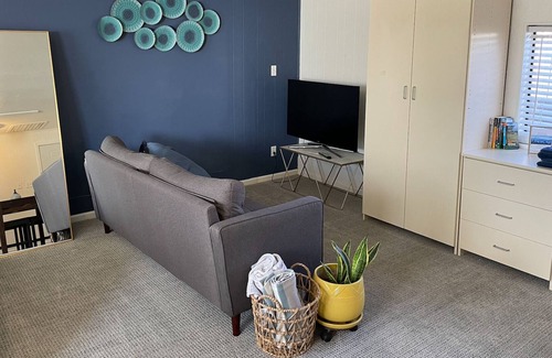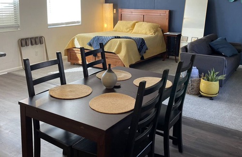 Forget your worries in this spacious and serene space. The studio is located on a quiet street yet is just blocks away from downtown Edgewater. There is a private parking space and private entrance. There is a shared patio with a grill and outdoor eating area. The studio itself has a fridge, dining area, desk to work, and window out to the garden.