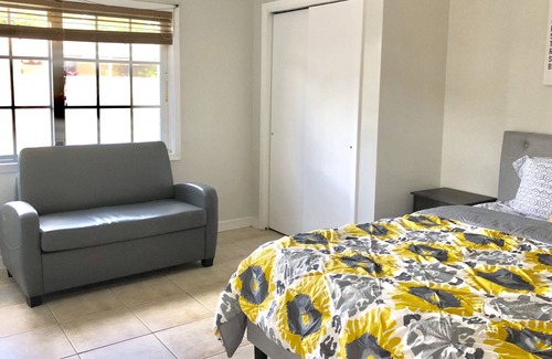 Spacious studio suite with all the amenities. Perfect for 2 guest, completely private with one full bath. Access to one parking spot. Close to Sawgrass Mall and Pembroke Lakes Mall. About 11 miles from the beach and 10 minutes from Pembroke Gardens! We are also 5 miles from Hard Rock Stadium. Located 18 miles from Ft. Lauderdale airport and 28 miles from Miami Airport.