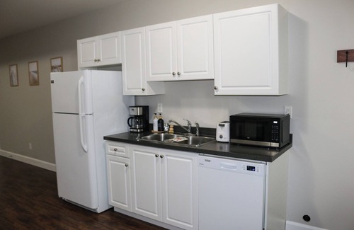 The kitchen is fully equipped with a full-size fridge, oven, microwave, and dishwasher. A coffee/tea station and cooking oil are provided for your convenience.