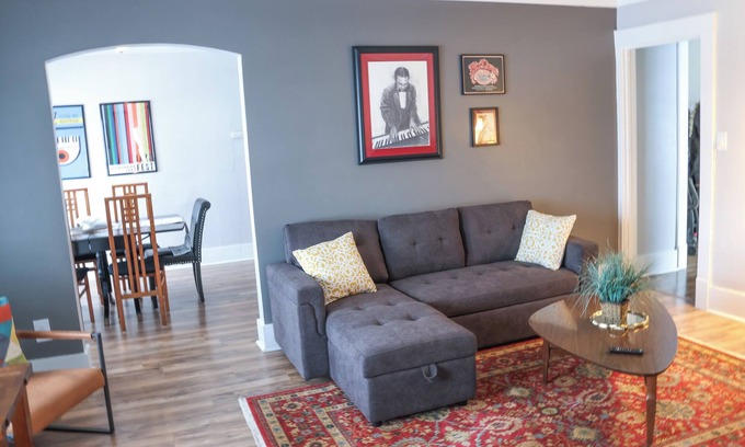 Welcome to this Bix inspired apartment in Davenport located on the top floor of a classic Daveport home with vintage charm. This cozy retreat features 2 bedrooms with a queen and full bed, a lovely living room with a sofa bed and plenty of seating, separate dining room, a well equipped kitchen. Guests can enjoy amenities like WiFi, a washing machine and dryer on site, heating, AC, and an iron. A block away from Vander Veer Park and centrally located so you can immerse yourself in all that Davenport has to offer.