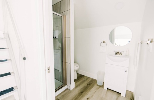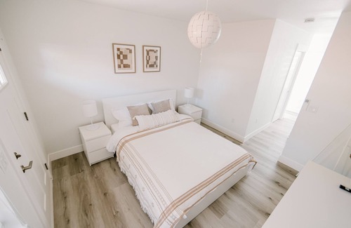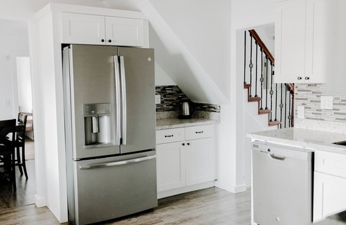 Inside this charming oasis, feel right at home in the spacious living areas bursting with bright, airy interiors and stylish black-and-white decor. Lounge on the sofa to stream your favorite movies or break out the board games in the loft. A primary full kitchen boasts stainless steel appliances and plenty of counter space for creating tasty and effortless home-cooked meals. Gather for hearty dinners, prepare quick breakfasts in the kitchenette, or have a barbecue while everyone unwinds on the sunny patio. The bedrooms are extra inviting with soft, cozy linens, additional smart TVs, and thoughtful touches, ensuring ultimate relaxation every moment of your stay.
