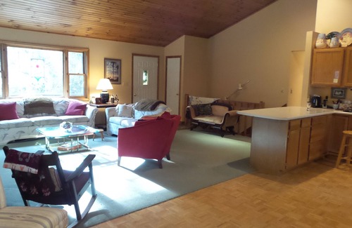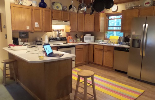 Three bedrooms, one king, one queen, two single beds. One and a half bath. Right in the town of Lake Placid. Big yard, Plenty of parking. Quiet neighborhood. Lots if room for dogs. Outdoor grill, working fireplace. Washer and dryer on site. Extra linens and towels are available . Open floor plain with large harvest dining room table. Outdoor deck with grill. Perfect for large families or Girls weekend. Wireless Internet.