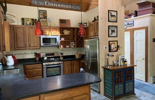 One primary bedroom, one private Queen bedroom, and two family-style bedrooms ; 3 full-baths - 1 per floor, ensures everyone's comfort. Additional features include a wood burning fireplace insert in living room, safe electric infrared fireplace entertainment center in playroom, updated kitchen & baths, WIFI, and a large game room with a full-size air hockey table, Foosball, and shuffleboard table.