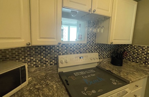 Amenities include Coffeemaker, blender, toaster, crockpot, microwave, well equipped dishes, silverware and glasses, cable tv, high speed wifi internet and security featuring front desk in lobby, ring doorbell for entry and electronic door lock. Unit has 2 large flat screen smart televisions and a DVD player for use as well. The bedroom offers a king size bed and the living room offers both a full pull out sofa bed and a queen size Murphy bed featuring an upgraded memory foam mattress. The bathroom has a brand new vanity and tiled flooring.