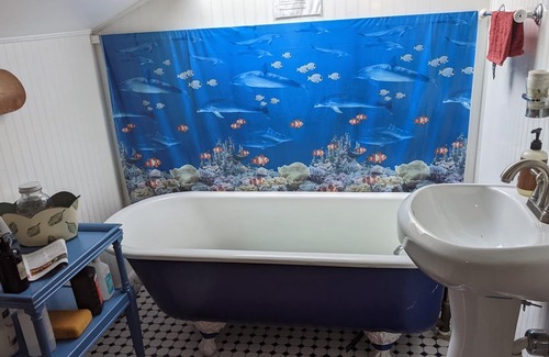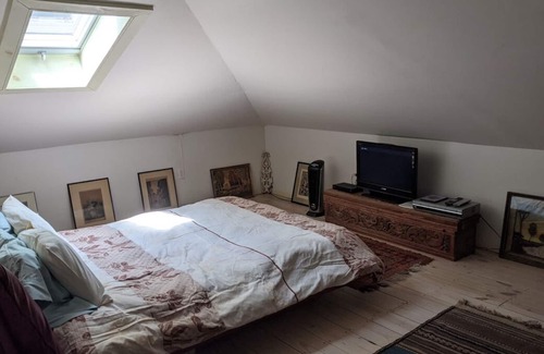 Sweet, 100 year, old farmhouse. Completely private with separate entrance, this spacious studio of rooms with skylights, nooks and crannies, occupies the entire 2nd floor. Private deck overlooks the woods, barns and gardens. Deer and turkey are frequent visitors. Our 8-acre property is an active medicinal farm (Catskills Comfrey) - with plenty of outdoor chairs, yoga platform and grilling pit (seasonal). We're minutes from many blazed DEC hiking trails and Belleayre Ski resort. Night skies are dark, clear and beautiful. We're 'clean & green'.