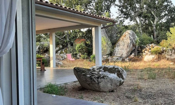 110 m2 air-conditioned villa opening onto a 36 m2 terrace, surrounded by magnificent megalithic rocks typical of Corsica.
