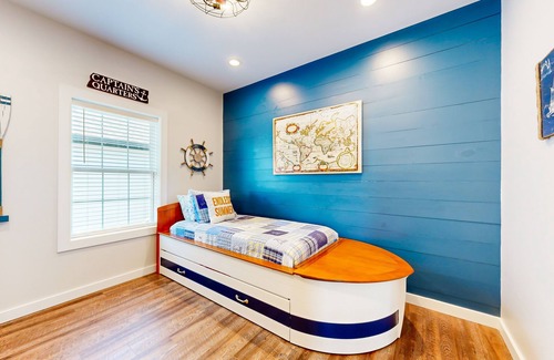 Nautical charm extends down the hallway into each of the four bedrooms. Extra special, the primary en suite bedroom showcases a large vanity, walk-in shower, and fabulous walk-in closet. Other key features you'll love include central air-conditioning, a private washer/dryer, and a collection of board games.