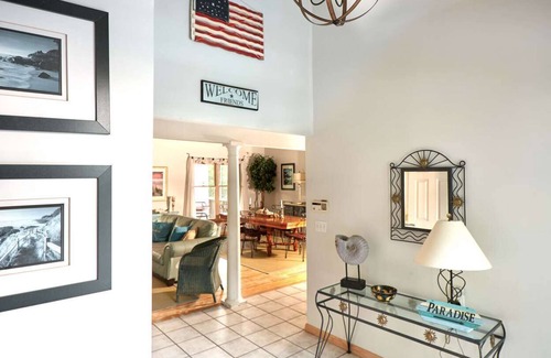 This waterfront North Shores home is THE perfect home for your family vacation! Sleeping 15 with 6 BR and 5.5 BA (Queen bedroom on main floor is adjacent to a 2 Bunk room with 4 single beds(no closet) and is considered a family bedroom. Front & back decks and a screened porch, there is ample room for all to comfortably enjoy a beach vacation. There is a private, salt-water pool, waterfront backyard and dock to tie up your boat or to crab and fish. There are kayaks (w/life vests), 1 paddleboard, fooze ball and pool tables for guest use. North Shores also offers a spacious community pool, tennis courts and access to its very own private beach on the Atlantic Ocean. There are 3 separate "suites" including the totally private "Cabana Suite" on the ground floor with exterior entrance. You will find wonderful amenities (offered as a courtesy only) including numerous cable and Smart TVs , beach chairs, golf cart, exterior wheelchair lift, beach wagon and toys, pickleball equipment, 3 full size refrigerators, gas grill, blenders, panini-makers, numerous ways to make coffee and much more!