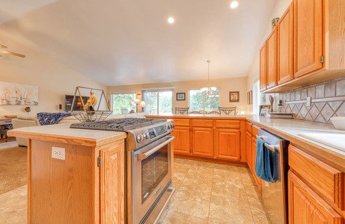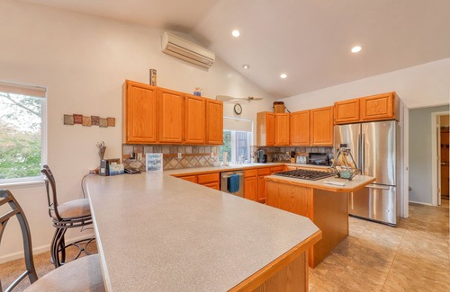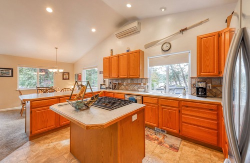 This 1,700 sq. ft. single-level home is well furnished and offers three bedrooms and two and a half bathrooms, including a large family room with comfortable furniture, air-conditioning, a large TV and stereo, WiFi, and plenty of entertainment options including indoor and outdoor games. A spacious kitchen is well equipped with many numerous appliances and a gas stovetop that will make cooking a breeze. A high chair and a Pack 'n Play are provided for the little ones. Through the sliding glass door, enjoy two decks, a large propane grill, and convenient outdoor dining while overlooking the ambiance of Rocky Bay. Beachcombing boots and water socks of various sizes are provided and await your exploration of sandy beaches at low tide.