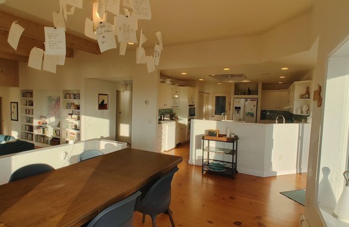 Truly a wonderful home for family gatherings on your own private beach. Its 3800 square feet on over an acre of land provides ample space for family activities in its large living and dining areas while the loft and study provide getaway locations for quiet contemplation or children's play. All have a spectacular view, particularly at sunset, of the bay and Provincetown harbor in the distance. One of the few places on the East Coast where the sun sets on ocean waters. The kitchen has ample room and facilities for preparing meals and snacks for large numbers. The separate master bedroom suite with its king bed has a large bathroom, large closets, and a studio alcove for kids. The 'guest' wing has two bedrooms, each with a queen bed, and a full bathroom. There's a recently-renovated bedroom downstairs with ensuite. Daybeds in the loft, and a fold-out sofa in the study provide additional sleeping locations. Wireless internet access is available throughout the house. If you need to work while away, enjoy the ocean-facing study, with printer, 30 inch monitor, keyboard, and everything you'll need to be productive.