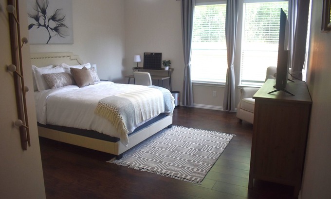 Lots of natural light and no back neighbors make this home such a comfortable home to be in. Looking at the trees from the kitchen while being only minutes from the west Houston medical center, City Centre, energy corridor, and dining and shopping, this home has a great location. With 4 bedrooms, this home offers enough space for the whole family and the neighborhood is adjacent to Cullen Park. The jetted tub, waterfall showerhead, and walk-in closet inside the main bedroom allows for some good and private relaxation time. Home is fully stocked for making meals and all the natural light in the home will help any virtual meetings. This home is a comfortable and welcoming space and is waiting to host you.