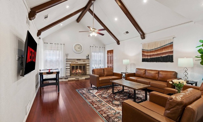 Spacious, cozy and full of fun! Whether you're planning a family vacation, a work trip, or a fun weekend with friends, this beautifully designed spot has it all! 4 bedrooms ( 2 on each floor), 2 full bathrooms ( 1 on each floor) and 2 living rooms ( 1 on each floor) provides plenty of space to unwind and connect or finish up with work.