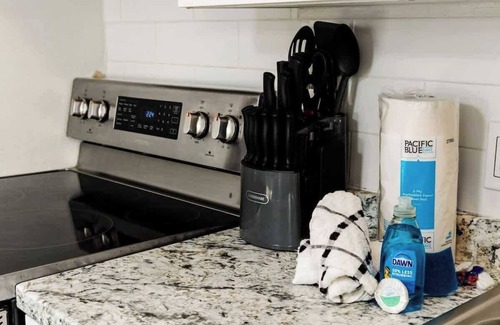 Full kitchen with everything needed to cook at home, high speed wifi, large smart Tv and more.