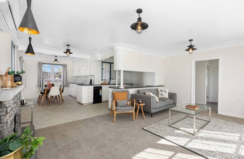 Step into Hazel’s chic Homestead and unwind in front of a crackling fire on a cozy evening. Whether you're preparing a meal in the spacious kitchen or ordering in, you can relax while enjoying all Sky satellite channels. This sun-drenched, newly renovated space offers plenty of room for the whole family to spread out and unwind. With top-quality furnishings, modern décor, comfy bedding and large, fluffy towels, every detail has been carefully curated for your comfort. Located just minutes from Hobbiton and 1.5 km from Matamata township, we look forward to making your visit truly special.
