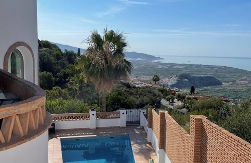 This lovely Spanish villa offers amazing views to the sea and to the picturesque Andalusian town of Salobrena, which is located on The Costa Tropical of Granada.