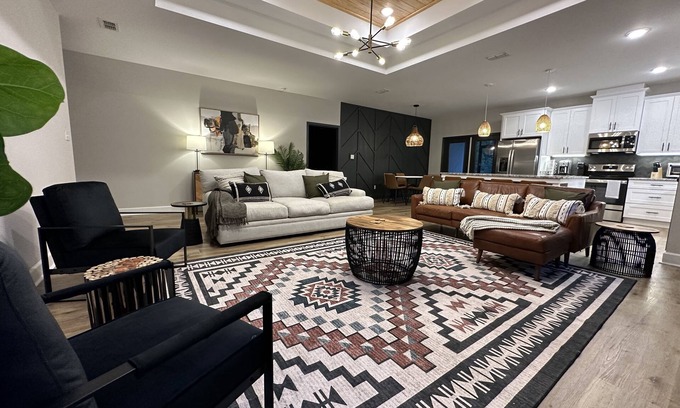 Brand new construction home with a modern mid century twist. This home is centrally located to the downtown area of Tallahassee. Located 5 miles from FSU stadium and 8 miles from FAMU campus. Only Minutes from the Midtown restaurants and nightlife. This home provides four bedrooms two bathrooms, It can sleep up to eight people. It also has a screened in back porch and an electric fireplace if you’re in the mood. The whole group will enjoy easy access to everything from the centrally located home. This home has parking for three vehicles but there is additional parking on the gravel road in the area marked in red refer to pictures in the listing.