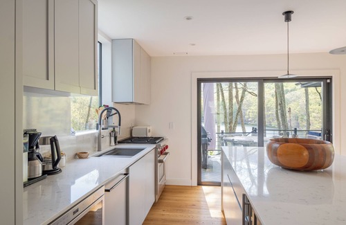 Recently renovated, this modern home strikes the perfect balance of chic minimalism and natural beauty. Throughout the property, skylights and serene lake views create a bright and tranquil atmosphere. The expansive deck is perfect for unwinding, complete with outdoor dining and lounge seating, or the private balcony off the primary suite awaits for a moment of serenity. Spanning four thoughtfully designed levels—with dual living areas, a chef’s kitchen, and separate dining room—this home offers both room to retreat and space to gather.