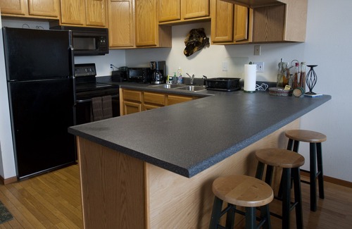 Our kitchen is stocked and our dining area with a table that seats six, or enjoy eating outside on