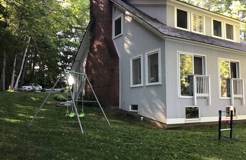 We are offering our year-round home with a private beach on Lake Champlain in Shelburne, Vermont. The house is located on a quiet, private road winding between an orchard and the original enclave of the homes and cottages on the lakeshore. Located at the broadest part of the lake, the property provides panoramic westerly views across the water towards the Adirondack Mountains. Relax on the wide, private, flatstone swimming beach and enjoy sunsets, campfires and the stars at night. The house features a spacious living room, dining and kitchen and screened sun porch spaces with lake views that are perfect for family gatherings. Outdoor dining on the bluestone patio is off the kitchen overlooking the lake and yard. Upstairs there are four bedrooms and two bathrooms plus a large loft space. Amenities include a full kitchen with dishwasher, washer and dryer and internet service. Centrally located, the house offers lake shore living within 30 minutes of downtown Burlington and 40 minutes of Middlebury. There is convenient shopping in Shelburne and South Burlington and the easy excursions to the Shelburne Museum, Shelburne Farms, the Charlotte town center and by ferry ride to historic Essex, New York.
