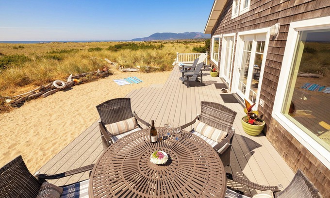 Step off the deck and into the sand at this beautiful full size oceanfront beach home in the quiet off-highway Nedonna area, just north of Rockaway Beach and only 90 miles from Portland! Enjoy spectacular sunsets over the ocean from our large picture windows facing the beach and mountains as you relax in our well appointed great room.