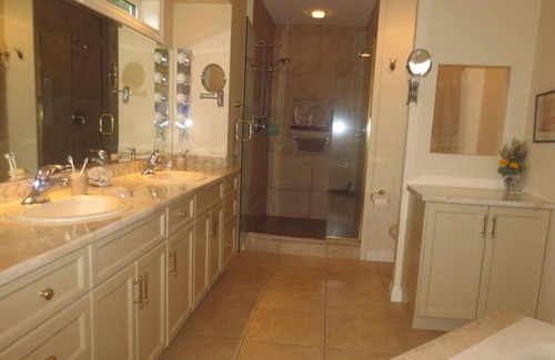 Come spend a mild winter in our home (1 month minimum) which contains a large modern kitchen, dining area and living room with a stone wood-burning fireplace (wood supplied). Spectacular view from all 3 rooms (great room). Master Bedroom(with full ensuite), Laundry Room, Powder Room and Computer Room all on main floor. Ground level entrance. Secured heated garage. 2 bedrooms upstairs with full bathroom.