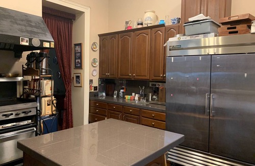 Note that the basic rental is for the main and top floors and includes the 7 bedrooms and bathrooms there, with kitchen, dining room and living areas. You have these 2 floors of the house to yourselves with no shared spaces. There are also 2 luxurious suites and another King bedroom with 3 full bathrooms on the first floor. Each of these 3 additional rooms can accommodate up to 3 guests each, for up to 9 additional guests total. The 2 suites each has a luxurious granite bathroom with double whirlpool tub and separate shower. Any of these may be added to accommodate more guests for an additional price. If these are not added, they are not accessible.