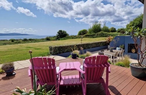 A BEAUTIFUL PRIVATE HOME LOCATED ON A QUIET CUL DE SAC, WITH STUNNING VIEWS OVER GALWAY BAY. CLOSE TO A SELECTION OF STUNNING SANDY BEACHES, GREAT RESTAURANTS, AND A 15 MINUTE DRIVE TO GALWAY CITY CENTRE. THE LARGE PRIVATE GARDEN OFFERS TWO OUTDOOR DECKS AND A SUNKEN COURTYARD - PERFECT FOR AL FRESCO DINING OR RELAXING WITH A CHILLED BOTTLE OF BUBBLY. THERE ARE OCEAN VIEWS FROM THREE OF THE BEDROOMS, THE TV ROOM, LOUNGE AND FULLY EQUIPPED KITCHEN/DINING ROOM.