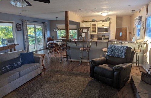 Enjoy the famous sunsets over Lake Cumberland from our spacious 48 ft deck and lower patio. This spacious lake house provides a great way to get away and relax. The house is not only roomy and comfortable enough for 12 guests but also recently updated! This home is perfect for any family on vacation to this gorgeous area, with the nearest boat dock (Lee's Ford Marina) being only one mile away. Interested in biking or hiking? Pulaski County Park is located only 4 mi away and is a great spot for both. Please note that while the house overlooks the lake, there is no walking access to the water from the house, as the house sits high on the shoreline. There is plenty of off-road parking for a boat and vehicles. After a fun day out and about, come back to our newly updated kitchen, or enjoy a summer nights cruise to one of our local restaurants. We can't wait to book with you!