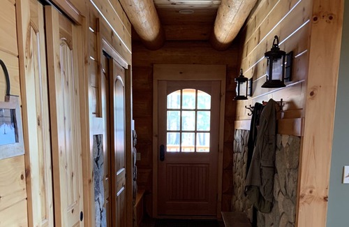 This true log cabin has 4 bedrooms and easily sleeps 12. It has a huge porch and wrap around deck with breath taking views of the ski mountain. It is close to 4 main ski areas. There is also a quiet lake nearby for swimming and kayaking or paddle boarding. Many hiking trails are also near. This house is off the beaten path to provide peace and quiet, yet close to all necessities. 15 minutes from Manchester Center for shopping and dining. Large fire pit outside allows for great social gatherings in the evening. Full gourmet kitchen.
