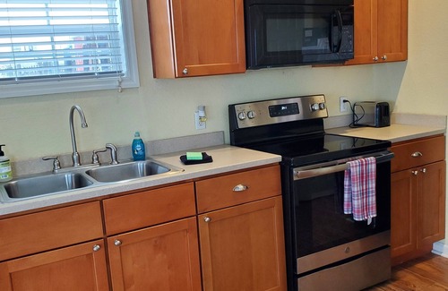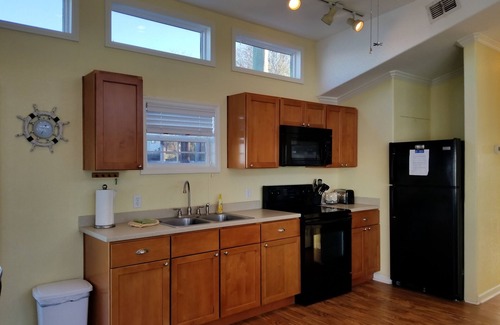 This spacious 950 sq. ft. floating home has a fully stocked kitchen including new full size appliances,, corian counter tops, indoor seating for 4 and a second wet bar area. The living room has ample seating to view the large flat screen TV with all DISH satellite programs. Free WiFi is available throughout the houseboat. The master bedroom has a comfortable queen size bed, an ensuite bathroom and a second TV. The second bedroom has a double bed which can accommodate either 1 or 2 additional people and has its own bathroom. Each bedroom has a spacious closet as well. All linens and towels are provided. The waterfront screened porch has additional dining for 4. There is also a second story observation deck for viewing the multitude of waterfront activity. A gas grill is located just a few steps from the houseboat.