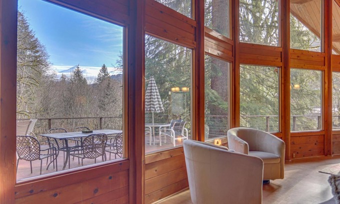Spectacular views of Mt Hood-Clear Creek Cabin-spacious 3-level-10 private acres has 3 Bedrooms , 2 Bathrooms, and max occupancy of 8 people. The minimum rental for this property is 1 nights, but this can change depending on the season you plan on staying. Previous guests have given good rated it, and VRBO labeled it a top-rated House because of the excellent services rendered by the owner or manager of this House, and has consistently provided great experiences for their guests. Most families or guests that use it recommend it to their friends and some of them are repeat guests. House has a friendly neighborhood, and the Rhododendron has interesting places to visit. If you want to learn more about the House in Rhododendron, such as places to visit and things to do nearby, you can check below to learn more.