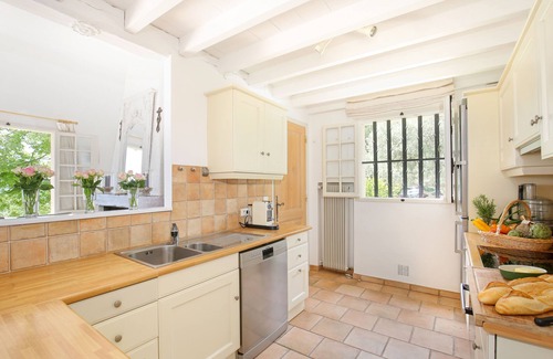 The outstanding pool area with private saltwater pool 9m x 4m offers hill-top views in all day sun with sun-loungers and large parasol for shade, and lovely imported Turkish pestemal pool towels. The fully-equipped, pool house and kitchen offer the opportunity for pool-side dining, featuring a Weber BBQ, fridge/freezer, sink and all equipment.