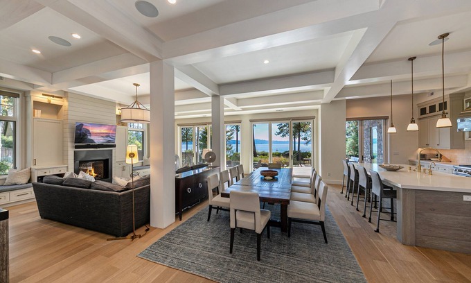 Experience award-winning interior aesthetics and embrace the quintessential Tahoe lifestyle in this exceptional lakefront retreat. Positioned less than half a mile from Nevada's vibrant casinos and dining establishments, and just a short 20-minute drive to Northstar Ski Resort and 30 to 40 minutes to Squaw Valley Ski Resort, this residence seamlessly combines relaxation with adventure