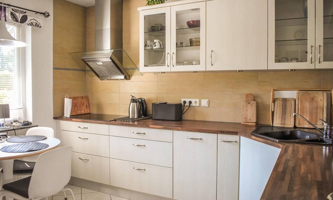 Step into this vacation home, which offers a warm atmosphere with its furniture and many details in a homey style, where you and your family can spend a cozy time playing board games, cooking together and movie nights. Have breakfast at the solid wood table in the cozy living room and chat about the day's adventures while cooking in the well-equipped kitchen. Meanwhile, your kids can play Uno on the balcony and feast on some fresh strawberries. Go for a run in the morning by the lake, where you can fish later. The surrounding area invites you to wonderful hiking and biking tours.