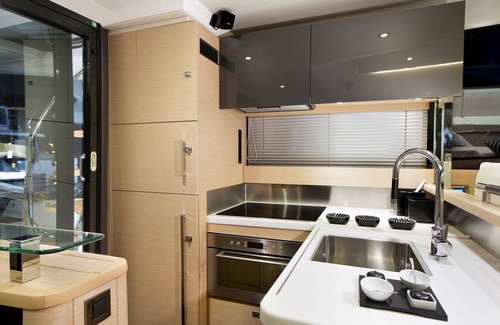 There is a sundeck on the bow and a complete third floor fly bridge with a Bimini top, Satellite TV in the Master, V-Berth, and the Salon. There is a complete sound system to play music inside and outside with Bluetooth. A complete galley with cook top, convection microwave, refrigerator, ice maker, freezer, toaster and Nespresso Coffee maker.