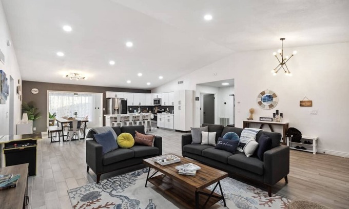 If you're planning on staying in Phoenix the Kalani Oasis is the perfect place to bring the entire family, spacious enough to host the whole gang. You will find plenty of group activities to keep em all busy, be it at the heated pool, playing corn hole, Pac-Man arcade game, on the putting green or grilling at the BBQ. Relax at the sun room, the hammock, or just chill in our huge living room with board games, high-speed internet & air conditioning. Minutes to major freeways & attractions. The property has a driveway free for you to park on. The space has 4 bedrooms, with 2 king sized beds, one queen sized and one with 2 twins, two bathrooms, a full kitchen and full sized fridge. The beds are firm, offering supportive comfort for a restful night’s sleep.