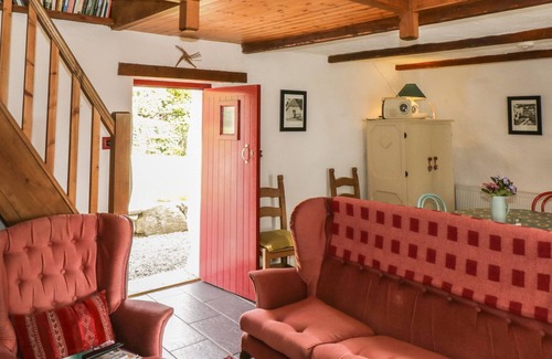 Amenities: Oil central heating with multi-fuel stove. Gas oven and hob, microwave, fridge, washing machine, TV with Saorview, DVD, CD/radio, selection of books, games and DVDs. Fuel, power and starter pack for stove inc. in rent. Bed linen and towels inc. in rent. Off road parking for 2 cars. Front lawned garden with furniture. One well-behaved dog welcome. Sorry, no smoking. Shop, pubs and beach 2 miles. Note: Pets must be on a lead at all times when outside the property. Note: Due to the style of the stairs as seen in pictures this property isn't suitable for children and people with mobility issues