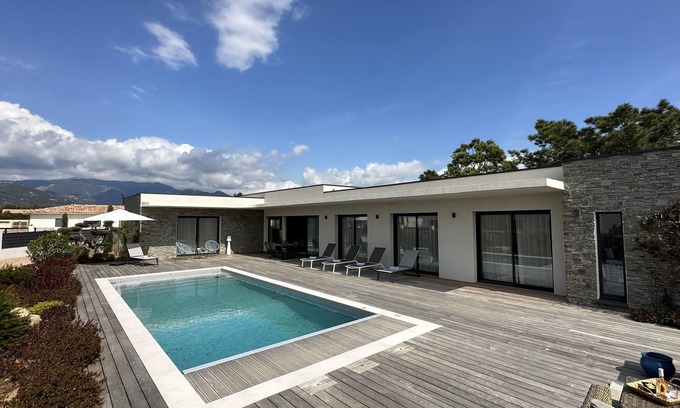 Best-rates for the Splendid new architect-designed villa starts from $676 per night with includes Air Conditioner, Designated Smoking Area, Bedding/Linens, Wellness Facilities, Internet, Kitchen, Pool, Private Pool, Oceanfront, Barbecue/Outdoor Cooking, Child Friendly, Parking, Ocean View, Sports/Activities, Entertainment, Laundry, TV, View, Balcony/Terrace, Fireplace/Heating StayAndPlay offers fully equipped golf villas, golf hotels, golf resorts, luxury golf cabins, and exclusive golf retreats, making it easier than ever to find your perfect golf escape — ideal for families, peaceful getaways, or pet-friendly retreats with the whole crew.