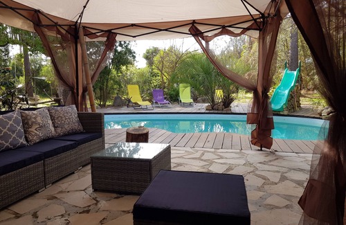 Relax by the outdoor pool or sip a drink in the garden of this 1399-sq-ft villa, which also features a deck or patio and outdoor furniture. As for the great indoors, you can try your hand at billiards, or enjoy the free WiFi and TV.
