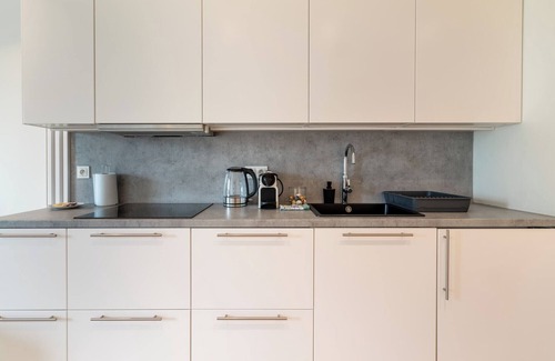 Spodek Deluxe Studio is a stylishly furnished apartment that features a living room with a sofa bed and a kitchenette, a bathroom, and a spacious balcony where guests can relax and enjoy a morning coffee or an evening glass of wine. Guests have access to various amenities, including free WiFi, laundry facilities located in the neighboring building, an iron, a hairdryer, a fridge with a freezer, an induction stove, a Nespresso coffee machine, a toaster, a kettle, and kitchen utensils.