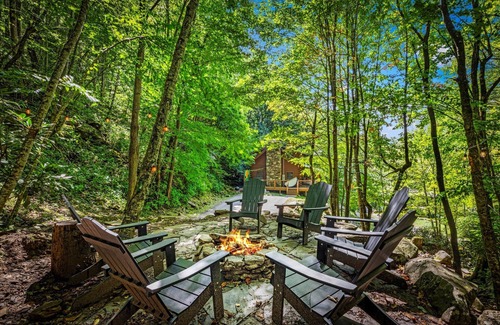 Spooky Sales! Creekside Cozy Cabin w/Waterfall+Hot Tub+PacMan+Firepit | Cabin in Maggie Valley
